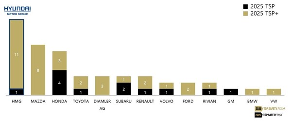 Hyundai Motor Group recognized in the IIHS 2025 TOP SAFETY PICK (TSP) and TOP SAFETY PICK+ (TSP+) with 12 awards,representing 25% of the total honors in 2025